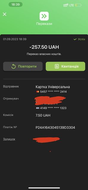 Выдалоплатил 250 грн. 29,08,2023 в 15.42