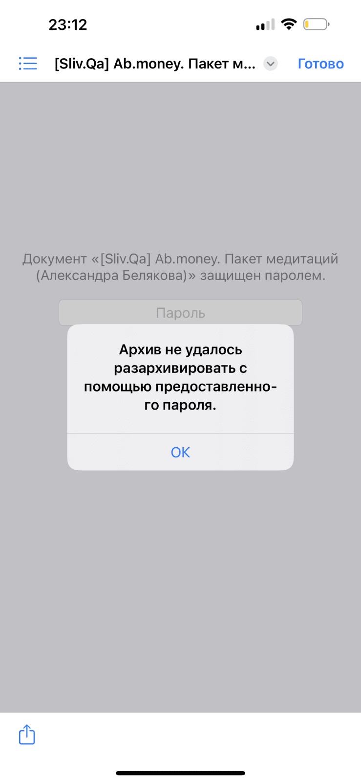 Пароль не подходит